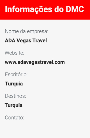 Além desses serviços, fornecemos Reservas de Hotel, Traslados, Passagens AéreasAda Vegas oferece serviços de viagem para todos os visitantes que vêm para a Turquia, se eles são parte de um grupo ou viajando individualmente e planejam ficar por um ou mais dias na Turquia. Somos um provedor de serviços reconhecido para passeios de entrada e saída na Turquia.